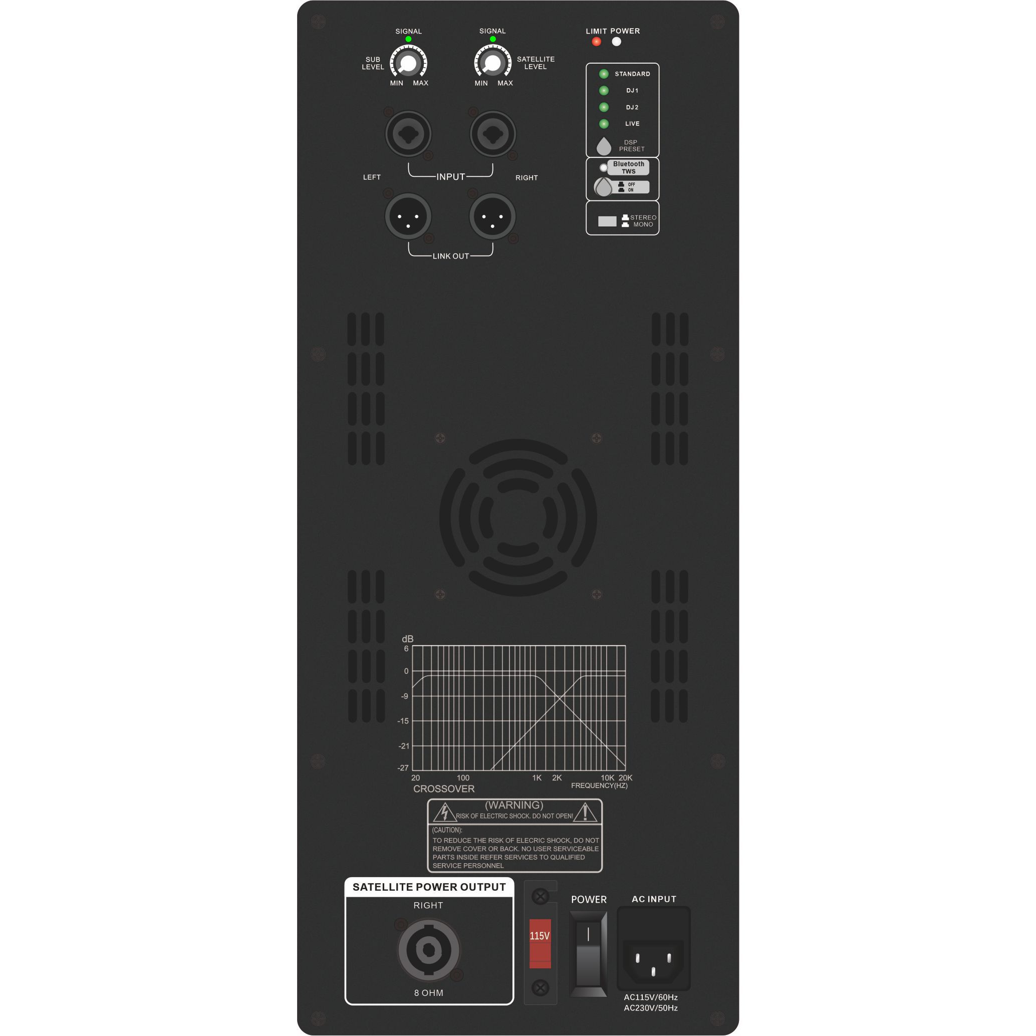 INICIO / Productos / Amplificador del sistema de sonido / Subwoofer autoamplificado serie DSP1903SUB con sistemas de 1.1 / 2.1 / 2.2 canales